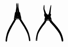 5. Специальные щипцы для снятия стопорных колец. Существует два типа таких щипцов: сдвижные - для извлечения стопорных колец из отверстий, и раздвижные - для снятия стопорных колец с валов, осей, тяг. Щипцы также бывают с прямыми и изогнутыми губками.