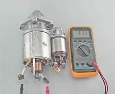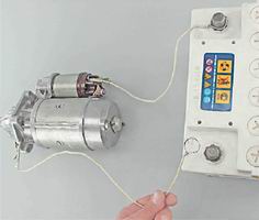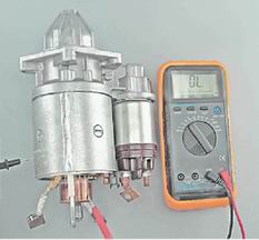Стартер - проверка и ремонтПроверка Для выполнения работ потребуется мультиметр. 1. Снимаем стартер (см. "Стартер - снятие и установка"). 2. Очищаем наружную поверхность стартера от грязи. 3. Для проверки тягового реле соединяем его вывод "50" с положительным выводом аккумуляторной батареи, а корпус стартера с отрицательным. При этом у исправного реле якорь выдвигает шестерню привода в окно передней крышки с характерным щелчком.