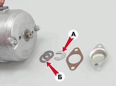 5. Снимаем кожух с прокладкой, стопорную шайбу A вала ротора и регулировочные шайбы Б.