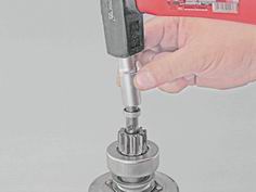 12. Оперев вал якоря на деревянную поверхность, подходящей оправкой спрессовываем ограничительное кольцо со стопорного кольца.