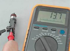 16. Омметром проверяем сопротивление обмотки форсунки, которое должно быть в пределах 12-14,5 Ом. B противном случае форсунку заменяем.