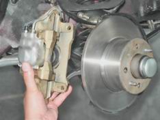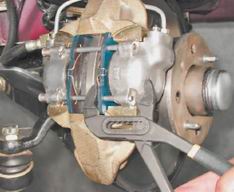 2. Отвернув болты крепления суппорта, снимаем его с тормозного диска.