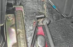 8. Извлекаем резиновую втулку из отверстия в перегородке моторного отсека и вынимаем трос.