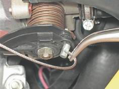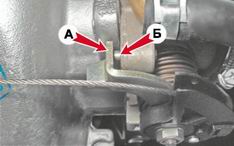 Установка 1. Установка троса выполняется в обратной последовательности. 2. Привод регулируем, изменяя положение резьбового наконечника оболочки троса в кронштейне, отворачивая и заворачивая гайки крепления троса. Добиваемся, чтобы при отпущенной или нажатой до упора педали "газа" дроссельная заслонка была, соответственно, полностью закрыта или полностью открыта. При полностью закрытой заслонке площадка кронштейна A сектора касается регулировочного винта Б корпуса дроссельной заслонки.