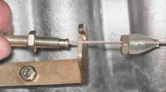 7. Полностью отворачиваем переднюю гайку крепления оболочки троса и выводим трос из прорези кронштейна.