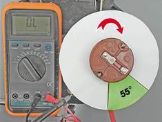 5. Более точную проверку, с учетом размерных погрешностей деталей можно выполнить, замеряя омметром сопротивление в цепи контактов прерывателя. Для этого подготавливаем круг с размеченным сектором в 55° и надеваем его на валик распределителя.