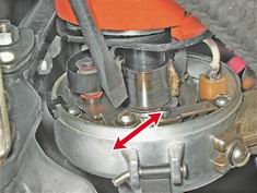 3. Затянув регулировочный винт, повторяем проверку (см. выше). При правильно выставленном угле затягиваем второй винт крепления контактной группы. 4. Устанавливаем крышку на место. После регулировки угла замкнутого состояния контактов прерывателя необходимо проверить правильность установки момента зажигания. |