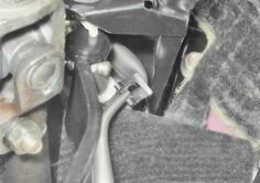 6. Торцовым ключом на 13 мм с удлинителем отворачиваем четыре гайки крепления усилителя к щитку моторного отсека.