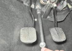 4. Круглогубцами или отверткой снимаем стопорную скобу со штифта, соединяющего толкатель с педалью тормоза.