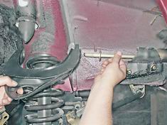 6. Вынимаем ось и снимаем верхний рычаг подвески.
