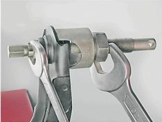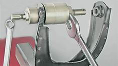 7. Для снятия резинометаллических шарниров закрепляем рычаг в тисках. C помощью специального съемника выпрессовываем из рычага резинометаллические шарниры.