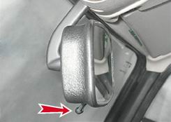 При опасности ослепления светом фар идущего сзади автомобиля следует перевести зеркало в положение "ночь", для чего переместить рычажок в направлении, указанном стрелкой.