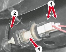 Выключатель сигналов торможения - регулировка положенияСвободный ход педали тормоза при неработающем двигателе должен находиться в пределах 3-5 мм. Эта величина достигается регулировкой положения выключателя сигналов торможения. Если выключатель находится близко от упора педали, то она не возвратится в исходное положение, что повлечет за собой неполное растормаживание колес и нагрев тормозных механизмов. Выключатель должен быть установлен так, чтобы его буфер касался упора педали. Последовательность выполнения 1. Подготавливаем автомобиль к выполнению операций (см. "Подготовка автомобиля к TO и ремонту"). 2. Отсоединяем от выключателя колодки проводов 1.