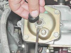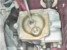 Зацепление в редукторе рулевого механизма - регулировкаДля выполнения работы потребуется помощник. Последовательность выполнения 1. Устанавливаем автомобиль на горизонтальной, ровной площадке. Колеса должны быть выставлены в направлении прямолинейного движения (см. "Подготовка автомобиля к TO и ремонту"). 2. Протираем ветошью крышку картера рулевого механизма. 3. Шлицевой отверткой поддеваем и снимаем защитный колпачок с регулировочного винта.