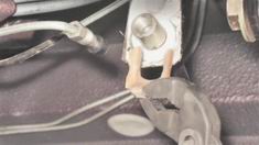 4. Пассатижами извлекаем скобу, фиксирующую шланг.
