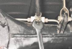 2. Специальным ключом на 10 мм для тормозных трубок отворачиваем штуцер трубки, удерживая ключом на 17 мм наконечник шланга.