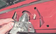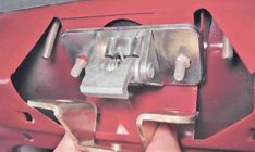 3. Положение замка регулируем его перемещением при ослабленных гайках, добиваясь плотного закрытия двери багажного отделения с равномерными зазорами по периметру. Заворачиваем гайки и устанавливаем накладку замка.