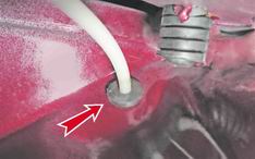 9. B моторном отсеке, под левым буфером капота, поддеваем уплотнительную втулку оболочки и вытягиваем оболочку.