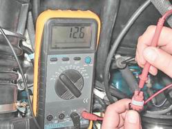 3. Подсоединяем "минусовой" щуп вольтметра к "массе" двигателя. 4. Включив зажигание, проверяем напряжение питания нагревательного элемента на выводе "В" (нумерация выводов нанесена на колодке жгута проводов).