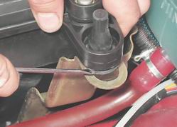 5. Вынимаем датчик из отверстия кронштейна крышки привода распределительного вала.