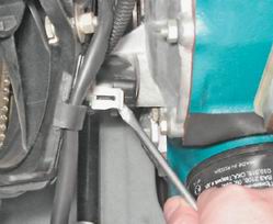 Датчик указателя температуры охлаждающей жидкости - заменаЕсли датчик выдает неверные данные о температуре охлаждающей жидкости, то необходимо проверить его на прогретом двигателе. Для этого при включенном зажигании снимаем с датчика наконечник провода и замыкаем его на "массу". Если стрелка указателя температуры на щитке приборов отклоняется вправо до упора, - датчик неисправен. Если стрелка не перемещается, то это указывает на обрыв в цепи. Снятие 1. Отсоединяем провод от отрицательного вывода аккумуляторной батареи ("Аккумуляторная батарея - снятие и установка"). 2. Сливаем из блока цилиндров охлаждающую жидкость ("Охлаждающая жидкость - проверка уровня и замена"). 3. Сдвигаем защитный колпачок и отсоединяем наконечник провода от датчика.