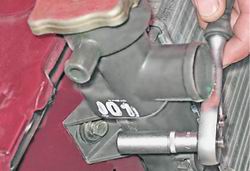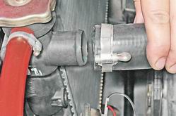 6. Шлицевой отверткой отгибаем край чехла вилки выключения сцепления и снимаем чехол.