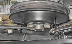 Установка Перед установкой деталей сцепления тщательно проверяем их состояние. На рабочих поверхностях маховика и нажимного диска недопустимы глубокие борозды, следы прижогов и трещины. Фрикционные накладки ведомого диска не должны иметь трещин, сколов, коробления и сильного износа, на головках заклепок не должны быть заметны следы изнашивания. Ступица диска должна перемещаться по шлицам первичного вала без заеданий. Выжимной подшипник должен вращаться легко, без посторонних шумов. На картере сцепления недопустимы трещины. Неисправные и поврежденные детали заменяем. Болты крепления корзины к маховику желательно установить новые. 1. Протираем тканью, смоченной уайт-спиритом рабочие поверхности дисков, маховика и первичного вала. 2. Наносим тонкий слой смазки ШРУС-4 или подобной на гладкую и шлицевую поверхности первичного вала, а также на шаровую опору вилки. 3. Оправкой, вставленной в отверстие внутреннего кольца подшипника в торце коленчатого вала, центрируем положение ведомого диска. Выступающая часть ступицы диска должна быть направлена в сторону корзины. При этом ведомый диск будет удерживаться оправкой.