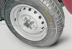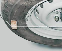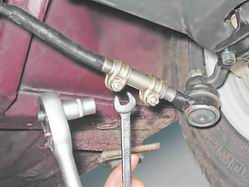 Колодки тормозных механизмов передних колес - заменаВнимание! Колодки заменяем комплектом с обеих сторон автомобиля. Периодически проверяйте состояние накладок тормозных колодок ("Тормозная система - проверка технического состояния") и заменяйте их, не допуская износа накладок до толщины менее 1,5 мм. Работа показана на тормозном механизме правого колеса. Снятие 1. Подготавливаем автомобиль к выполнению операций ("Подготовка автомобиля к ТО и ремонту"). 2. Проверяем уровень тормозной жидкости в бачке. Если уровень находится на метке "MAX", отбираем грушей часть жидкости из бачка во избежание ее выплескивания при вдавливании поршней в цилиндры. 3. Снимаем переднее колесо (см. "Колесо - замена"). 4. Ветошью очищаем от грязи тормозной механизм и наносим на направляющие пальцы проникающую смазку с преобразователем ржавчины.