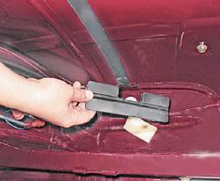 18. Плоскогубцами отсоединяем и снимаем возвратную пружину.