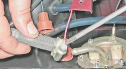 10. Снимаем пусковое устройство, выводя из его штока тягу. Пинцетом осторожно вынимаем уплотнительное кольцо из проточки канала подвода разрежения.