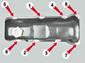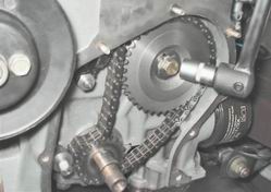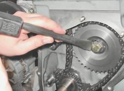 6. Аналогично заменяем колпачки остальных клапанов 1-го и 4-го цилиндров. 7. Поворачиваем коленчатый вал на 180° и, придерживая звездочку распределительного вала с цепью, устанавливаем поршни 2-го и 3-го цилиндров в положение ВМТ. 8. Заменяем колпачки клапанов 2-го и 3-го цилиндров. 9. После замены колпачков поворачиваем коленчатый вал на 540° для установки поршня 4-го цилиндра в положение ВМТ такта сжатия. 10. Устанавливаем корпус с распределительным валом на шпильки головки блока цилиндров и равномерно заворачиваем гайки крепления ("Распределительный вал и рычаги клапанов - замена"). 11. Отвязываем проволоку, устанавливаем звездочку с цепью на распределительный вал, заворачиваем болт крепления и контрим его, загнув лепестки стопорной шайбы. 12. Проверяем совпадение меток. 13. "Заряжаем" натяжитель цепи и, установив его на прежнее место, "разряжаем" ("Натяжитель цепи привода газораспределительного механизма - замена") и регулируем натяжение цепи ("Цепь привода газораспределительного механизма - замена). 14. Регулируем зазор между рычагами и кулачками распределительного вала ("Зазор между рычагами клапанов и кулачками распределительного вала - регулировка). Установка Установка всех снятых деталей выполняется в обратной последовательности. |