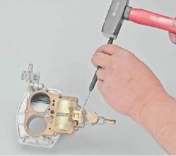 У исправного переключателя сопротивление должно стремиться к нулю. Снятие Неисправный микропереключатель можно заменить, не снимая карбюратор с автомобиля. Для наглядности работа показана на снятом карбюраторе. 1. Отсоединяем колодки проводов от выводов микропереключателя ("Карбюратор - снятие и установка"). 2. Шлицевой отверткой отворачиваем два винта крепления микропереключателя к кронштейну и снимаем микропереключатель.