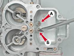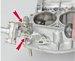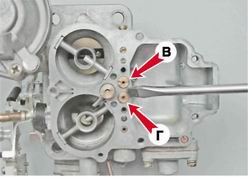 Внимание! Форсунки, устанавливаемые на автомобилях, могут отличаться габаритными размерами и характеристиками. При замене устанавливайте форсунку, идентичную установленным на вашем автомобиле. В соответствии с экологическими требованиями ЕВРО II, автомобиль оборудован системой улавливания паров топлива. Система состоит из адсорбера с электромагнитным клапаном продувки (установлен в моторном отсеке), предохранительного, обратного и перепускного клапанов (установлены в нише топливного бака), соединительных трубок и шлангов. Пары топлива из бака поступают через перепускной, обратный и гравитационный клапаны в адсорбер. Предохранительный клапан, имеющий выход в атмосферу, регулирует давление паров топлива в баке. Гравитационный клапан установлен в магистрали системы улавливания паров и предотвращает вытекание топлива из бака при опрокидывании автомобиля. Адсорбер имеет три патрубка. Через патрубок "TANK" (обозначение нанесено на корпусе) поступившие в адсорбер пары топлива при неработающем двигателе поглощаются и удерживаются активированным углем. Второй патрубок, обозначенный "AIR", соединен с атмосферой, а третий (патрубок электромагнитного клапана продувки адсорбера) - соединен шлангом со штуцером корпуса дроссельной заслонки. После пуска двигателя (при температуре охлаждающей жидкости выше 75°С, скорости автомобиля более 10 км/ч и открытии дроссельной заслонки на величину более 4%) ЭБУ подает сигнал на открытие клапана продувки адсорбера, который сообщает полость адсорбера с корпусом дроссельной заслонки. При этом происходит продувка адсорбера - смешивание паров топлива с воздухом и их дальнейшее поступление через корпус дроссельной заслонки, ресивер и впускной трубопровод в камеры сгорания. Чем больше расход воздуха двигателем (при повышении оборотов коленчатого вала), тем интенсивнее осуществляется продувка.