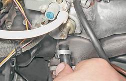 Детали сцепления: 1 - маховик; 2 - ведомый диск сцепления; 3 - корзина; 4 - выжимной подшипник с муфтой; 5 - бачок гидропривода; 6 - шланг; 7 - главный цилиндр гидропривода выключения сцепления; 8 - сервопружина педали сцепления; 9 - возвратная пружина педали сцепления; 10 - ограничительный винт хода педали сцепления; 11 - педаль сцепления; 12 - трубопровод гидропривода выключения сцепления; 13 - шаровая опора вилки; 14 - вилка выключения сцепления; 15 - оттяжная пружина вилки выключения сцепления; 16 - шланг; 17 - рабочий цилиндр гидропривода выключения сцепления; 18 - прокачной штуцерНа шлицах первичного вала коробки передач свободно установлена ступица, на которой установлен ведомый диск, разделенный радиальными прорезями на двенадцать секторов. К ведомому диску с двух сторон приклепаны фрикционные накладки из специального материала. Крутящий момент от ведомого диска на его ступицу передается через пружинно-фрикционный демпфер (гаситель крутильных колебаний). Корзина (ведущая часть сцепления) крепится к маховику шестью болтами и включает в себя нажимной диск, кожух и диафрагменную нажимную пружину. Нажимной диск подвижно закреплен на кожухе. Под действием диафрагменной пружины ведомый диск зажимается между нажимным диском и маховиком. Выключение сцепления осуществляется гидравлическим приводом с подвесной педалью. Педаль сцепления установлена на общей с педалью тормоза оси, закрепленной на кронштейне перегородки моторного отсека. К верхней части педали присоединена пружина, снижающая усилие выключения сцепления. К педали шарнирно крепится толкатель. Толкатель полусферическим концом входит в гнездо поршня главного цилиндра привода выключения сцепления. Ход педали с одной стороны ограничен регулировочным винтом, а с другой - ходом поршня в цилиндре. Главный цилиндр расположен в моторном отсеке и крепится двумя гайками к шпилькам педального узла. Шлангом цилиндр соединен с бачком гидропривода выключения сцепления. Бачок установлен на перегородке моторного отсека с левой стороны. Бачок изготовлен из полупрозрачной пластмассы, что облегчает проверку уровня жидкости в приводе. В крышке бачка установлен гофрированный резиновый успокоитель жидкости. Для соединения полости бачка с атмосферой в крышке выполнено отверстие. К главному цилиндру подсоединен штуцер трубопровода, подводящего жидкость от главного цилиндра к рабочему, другой конец этого трубопровода соединен с наконечником шланга гидропривода. Наконечник шланга скобой закреплен в кронштейне кузова. Другой конец шланга соединен с рабочим цилиндром гидропривода выключения сцепления. Рабочий цилиндр двумя болтами крепится к картеру сцепления. Шток цилиндра является толкателем вилки выключения сцепления, установленной на шаровой опоре в картере сцепления. Одним концом вилка опирается на регулировочную гайку толкателя, а другим фигурной пружиной прижимается к муфте выжимного подшипника. Муфта подшипника надета на направляющую втулку передней крышки коробки передач и имеет возможность продольного перемещения. При работающем двигателе ведущая и ведомая части сцепления вращаются как одно целое, передавая крутящий момент от коленчатого вала двигателя на первичный вал коробки передач. При нажатии педали сцепления усилие через гидропривод от рабочего цилиндра передает