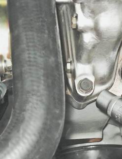 2. Торцовым ключом на 13 мм отворачиваем две гайки крепления опоры к задней крышке коробки передач.