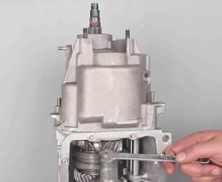 2. При обнаружении люфта верхнюю шаровую опору необходимо заменить ("Шаровые опоры - замена"). Проверка состояния нижней шаровой опоры 1. Очищаем нижнюю часть шаровой опоры от грязи и ключом на 7 мм отворачиваем пробку.