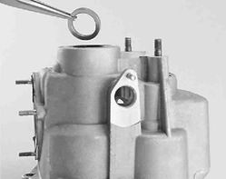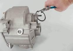 3. Если состояние нижней шаровой опоры проверяется на ровной горизонтальной площадке и воспользоваться штангенциркулем невозможно из-за его длины, то, отвернув пробку, вставляем в шаровую опору отрезок проволоки и наносим на ней риску вровень с торцом шаровой опоры.