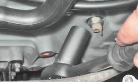 16. Отсоединяем от патрубков корпуса дроссельной заслонки шланг отвода охлаждающей жидкости и воздуховод ("Корпус дроссельной заслонки - снятие и установка"). 17. Отсоединяем от патрубка ресивера шланг вакуумного усилителя тормозов ("Ресивер - снятие и установка"). 18. Отсоединяем от трубок рампы шланги подвода и слива топлива ("Топливная рампа - снятие, установка и проверка форсунок"). 19. Торцовым ключом на 12 мм с удлинителем отворачиваем десять болтов внутреннего крепления головки к блоку цилиндров.