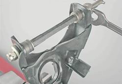 7. Повернув цилиндр относительно отверстия в тормозном щите, выводим упоры цилиндра из зацепления с тормозными колодками.