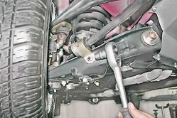Внимание! Если штуцер "прикипел" к трубке и отвернуть его не удается, попробуйте (после выполнения п. 6) отвернуть цилиндр, удерживая штуцер специальным ключом для тормозных трубок на 10 мм. При таком способе снятия цилиндра тормозную трубку необходимо заменить новой. 5. Для уменьшения потерь тормозной жидкости надеваем на конец трубки защитный колпачок (от штуцера прокачки тормозного цилиндра). 6. Торцовым ключом на 10 мм отворачиваем два болта крепления рабочего цилиндра и снимаем его.