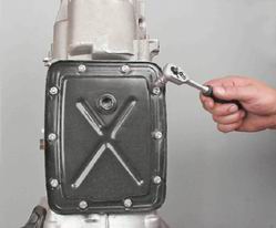 Редуктор заднего моста - снятие и установкаРедуктор снимаем при необходимости его ремонта или замены. Снятие 1. Устанавливаем автомобиль на смотровую яму или эстакаду ("Подготовка автомобиля к ТО и ремонту"). 2. Сливаем масло из заднего моста ("Задний мост - проверка уровня и замена масла"). 3. Отсоединяем карданный вал от фланца хвостовика ведущей шестерни ("Карданная передача - снятие и установка"). 4. Снимаем полуоси ("Полуось - снятие и установка, замена сальника"). 5. Торцовым ключом на 12 мм отворачиваем восемь болтов крепления редуктора к балке заднего моста.