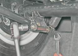 3. Снимаем оттяжную пружину. 4. Ключом на 13 мм отворачиваем контргайку, удерживая регулировочную гайку ключом того же размера.