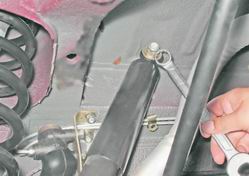 5. Торцовым ключом на 10 мм с удлинителем отворачиваем четыре болта крепления рычага.