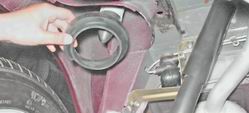 3. Снимаем кожух с рычага. 4. Снимаем резиновый уплотнитель с кронштейна рычага.