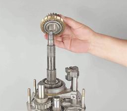7. Очищаем полость ступицы от старой смазки и протираем внутреннюю поверхность ступицы ветошью, смоченной керосином или уайт-спиритом. 8. Для замены подшипников поддеваем шлицевой отверткой разрезную дистанционную втулку и снимаем ее.