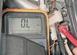 16. Омметром проверяем сопротивление обмотки форсунки, которое должно быть в пределах 12-14,5 Ом. В противном случае форсунку заменяем.