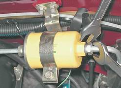 Установка 1. Если бак снимали не для замены, промываем его бензином или растворителем. 2. Установка топливного бака выполняется в обратной последовательности. 3. Залив в бак топливо, включаем зажигание для создания давления в системе питания и проверки герметичности соединений. |