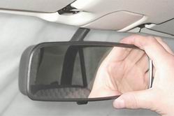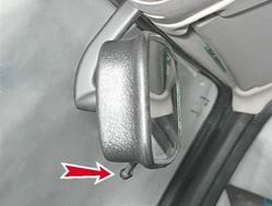 При опасности ослепления светом фар идущего сзади автомобиля следует перевести зеркало в положение "ночь", для чего переместить рычажок в направлении, указанном стрелкой.