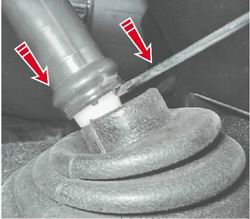Пробка сливного отверстия снабжена магнитом, который притягивает к себе продукты износа деталей редуктора. 5. Очищаем пробку и устанавливаем ее на место. Примечание. Если слитое масло темное и в нем явно заметны металлические частицы, редуктор рекомендуется промыть. Для этого заливаем в мост приблизительно литр масла с низкой вязкостью (например, веретенное). Вывесив одно из задних колес ("Колесо - замена"), запускаем двигатель и включаем первую передачу. Через пять минут выключаем двигатель, сливаем масло, снова очищаем и заворачиваем пробку сливного отверстия. 6. Заливаем в мост до уровня заливного отверстия свежее трансмиссионное масло и заворачиваем пробку. 7. Очищаем сапун снаружи щеткой или ветошью. Несколько раз поворачиваем колпачок сапуна для прочистки его канала.