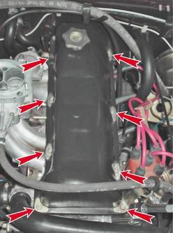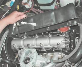 При этом метка на шкиве коленчатого вала должна совпасть с меткой на крышке привода распределительного вала карбюраторного двигателя.